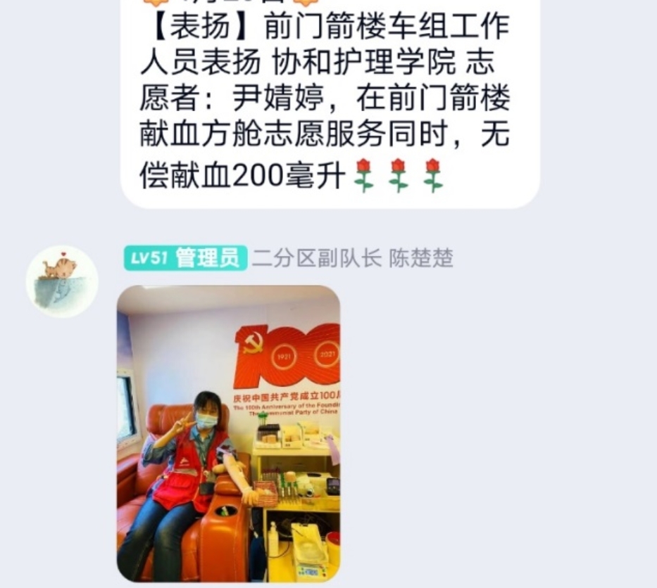 beat365中国唯一官网18本2班的尹婧婷同学在五一做志愿期间也亲身参与了献血事业,并受到了协会的表扬。她给我们分享了她曲折的献血故事:“蚊子想要实现献血的心愿是一件很艰难的事情。首先我要满90斤,第一次准备献血是2018年10月4日,那一天班上的同学组织一起去欢乐谷夜场,我查了路线,中途有北京博物馆献血车,表都填好了!(看到最近有没有剧烈运动,我心里一惊,心想待会儿要玩平缓一点的游戏。)说时迟那时快,已经撸起袖子了!护士老师突然关怀:“小姑娘,你有90斤吗?” 我心里慌得一批,穿了那么多衣裳,应该有吧~ 老师给了我体重秤——89,于是我便欢快的去欢乐谷安排了太阳神车…第二次、第三次,生活总是那么出其不意,而历史却总是惊人的相似。学校通知9月中旬要组织学生在东单献血,我立马报了名!我那一周一天吃5顿,恨不得吃了睡睡了吃。终于!自己在称上有90.8了!然而!献血前一天来例假了…这一次,没有什么要表达的,只是刚刚好假期在家被喂肥了,例假也没来,没有熬夜,转氨酶不高,于是,所有的一切都顺利起来,我有了人生的第一张献血证!我骄傲!!!”