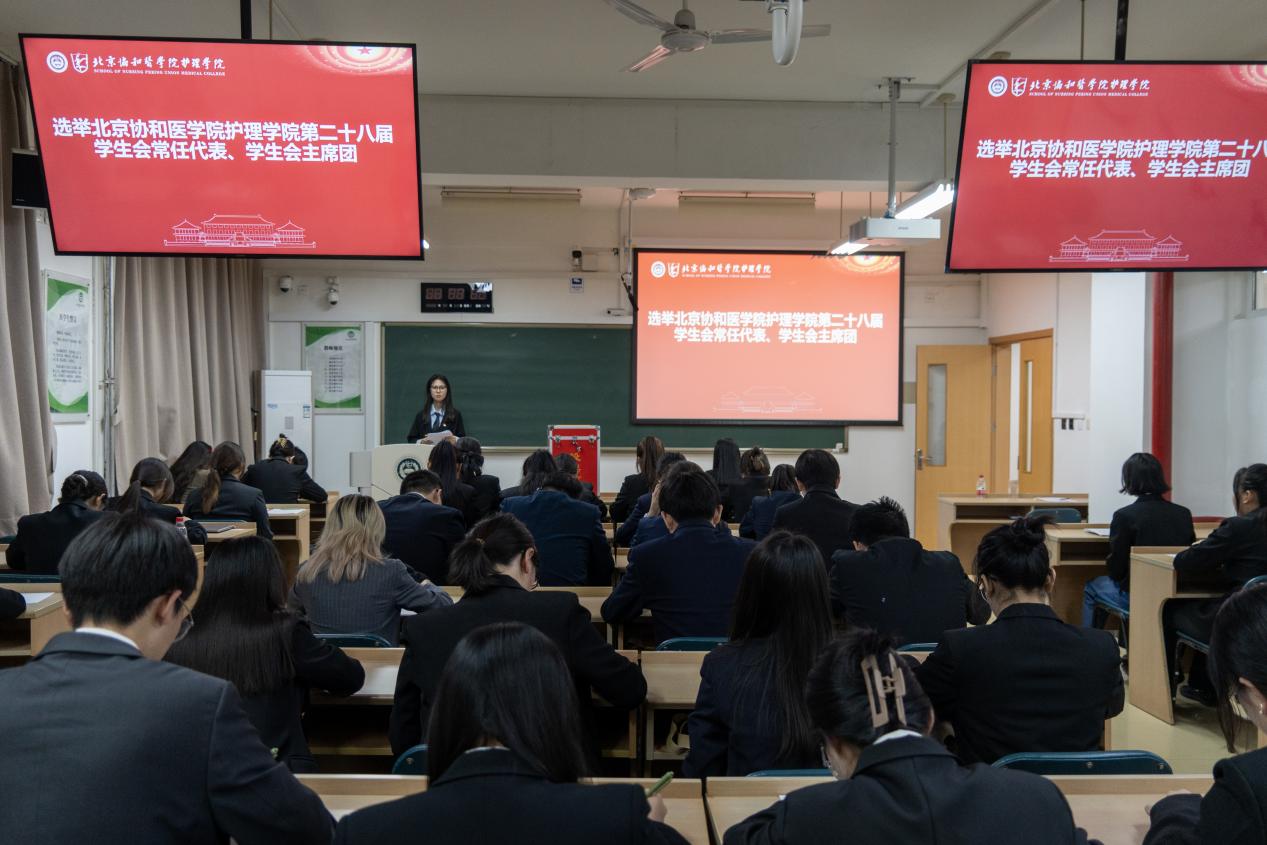 十六点三十分召开全体会议,审议并通过《beat365中国唯一官网第二十八次学生代表大会选举办法(草案)》、常任代表和主席团候选人建议名单等,表决通过总监票人与监票人名单,并进行大会选举,选举产生第28届学生会8名学生会常任代表及3名主席团成员。