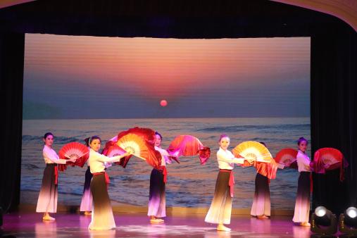 五月的花海寓意青春的绽放,正如我院PUMC Girls倾情演绎的《Lovesick girls》将青年活力和梦想融入挥洒的汗水,让朝气蓬勃、活力四射的舞蹈将气氛推向高潮,展现出我院学子的激情与朝气。在第二篇章“颂-青春时代”中,陈新荻和裴润元两位同学表演创意独唱《龙文》,悠扬的歌声和古朴的书法将同学们的思绪带入中华文化源远流长的历史长河中,令人回味无穷。飞扬舞蹈团以爱国主题群舞《万疆》开启第三篇章,传递青年学子对祖国富强、山河壮美的赞颂,对祖国美好祝福和未来的欣然向往。舞蹈结束后,清越的歌声从台下和楼上传来,王璐瑶和宋美萱二位同学在柔和的旋律中走上舞台,深情对唱歌曲《飞云之下》,传递她们对祖国的热爱、对梦想的追逐以及对未来的期待。