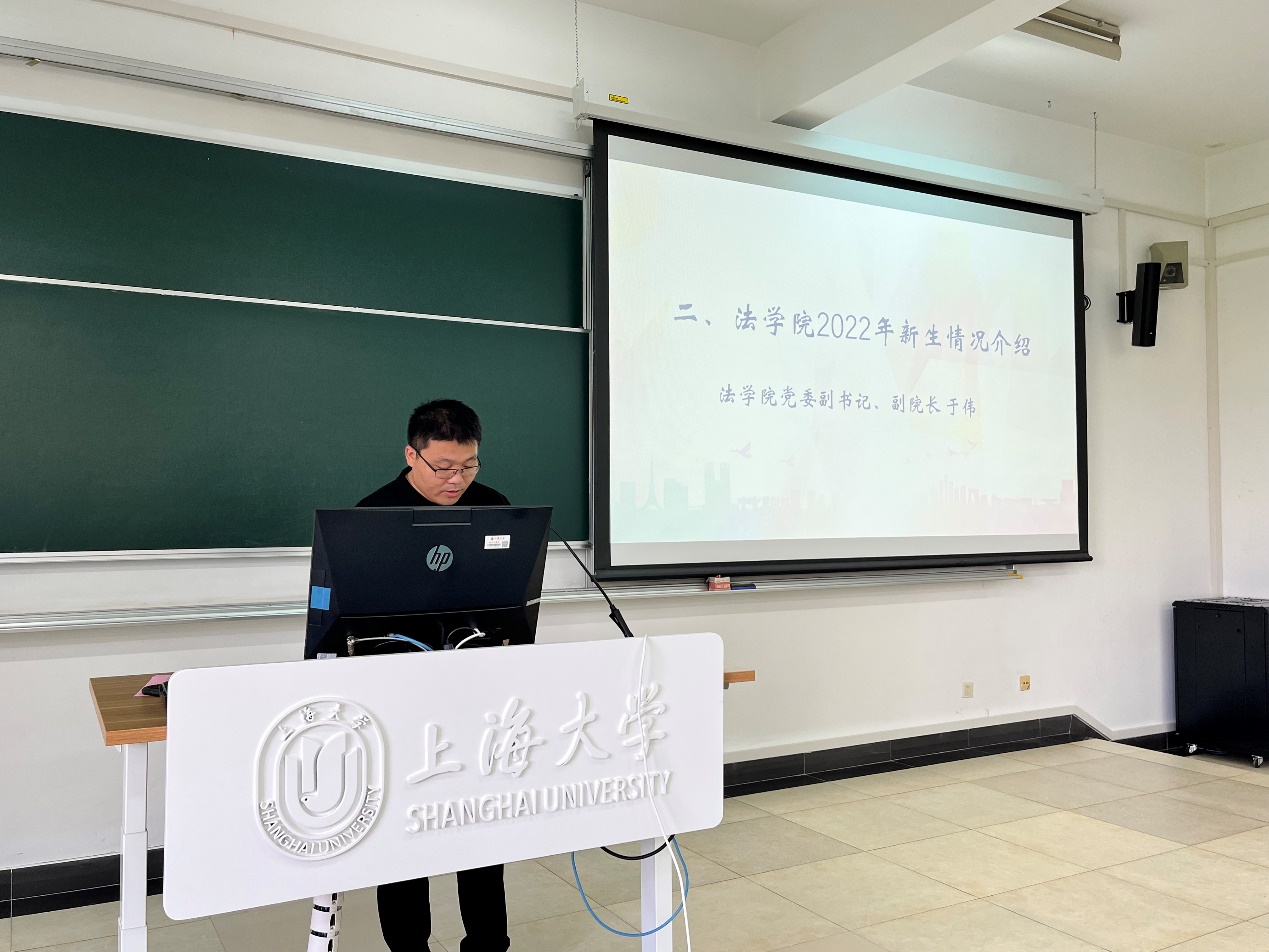 典礼伊始,学院党委副书记、副院长于伟老师介绍了2022级澳门pg官方电子平台研究生的新生情况。澳门pg官方电子平台2022级研究生共有178名同学,包括145位全日制同学,33位非全日制同学。其中女生130人,男生48人。于伟提出,入读澳门pg官方电子平台的同学都是学习上的佼佼者,希望大家珍惜时光,铭记使命,励志笃学,谱写法律人的青春之歌!