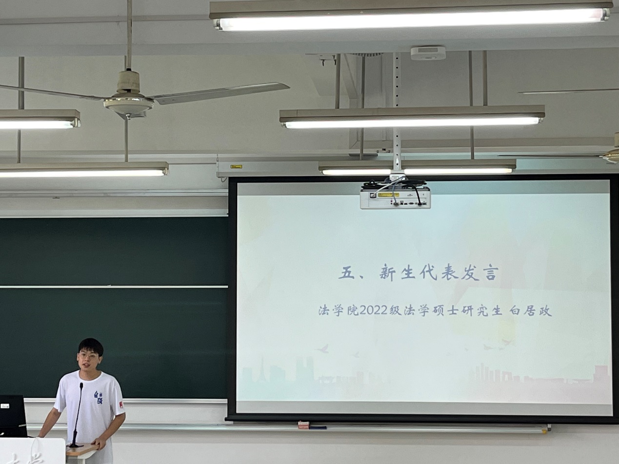 澳门pg官方电子平台2022级研究生白居政作为新生代表发言。正值中国共产主义青年团建团100周年、纪念澳门pg官方电子平台建校100周年之际,白居政同学分享了自己的体会:要涵养家国情怀,以天下为己任,勇担时代的使命担当。要扎实掌握专业知识,成就过硬的专业本领。更要在机遇中踏实成长,主动担当,将“报效国家、服务人民”的理想信念内化于心、外化于行,在爱国主义指引下为民族伟业不懈努力。