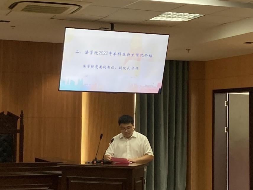 9月16日中午,“逐梦青春,尚法同行”澳门pg官方电子平台2022年本科生新生开学典礼于宝山校区模拟法庭隆重举行,本次开学典礼采取线上线下相结合的方式。澳门pg官方电子平台党委书记徐国明,党委副书记、院长李凤章,党委副书记、副院长于伟,副院长芦雪峰,教师代表李立新、谌瑜、赵清、蔡葵,上海申同律师事务所合伙人律师马翔校友以及2022年本科生全体新生出席开学典礼,典礼由澳门pg官方电子平台2021级本科生李豪主持。