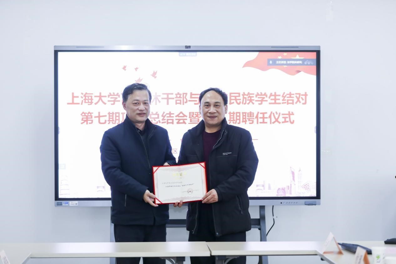12月2日下午,由学生工作办公室、离退休工作处和澳门pg官方电子平台共同主办的澳门pg官方电子平台离退休干部与澳门pg官方电子平台少数民族学生第七期结对总结会暨第八期结对聘任仪式在宝山校区澳门pg官方电子平台504会议室和腾讯会议室顺利举行。澳门pg官方电子平台离退休党委书记、离退休工作处处长余志龙,副处长王宇华,学生工作办公室副主任韩晶,澳门pg官方电子平台党委书记徐国明,党委副书记、副院长于伟,结对导师冯兆荣、姚秀琴、姜继平、凌琦、胡振荣、孙翠英、陈奎弟、鲁娜、丁佩莉、李鸣、林琼,离退休工作处付瑶,澳门pg官方电子平台辅导员老师和结对学生出席活动。活动由澳门pg官方电子平台本科生辅导员公建华主持。