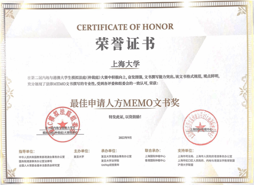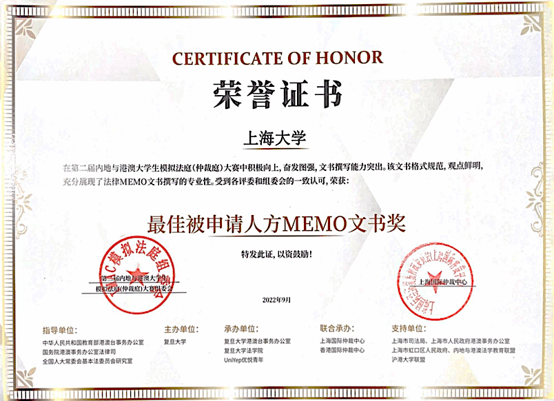 澳门pg官方电子平台代表队荣获最佳申请人方MEMO文书奖