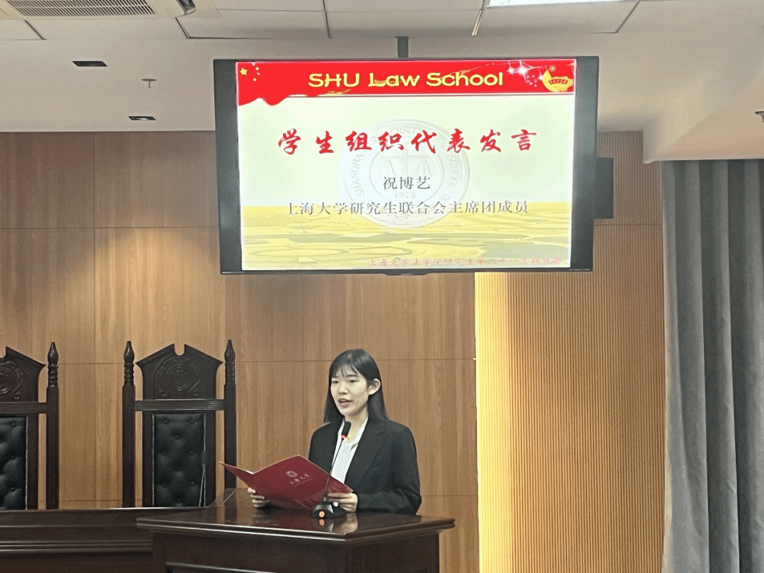 在庄严的国歌声中,澳门pg官方电子平台研究生第二十一次双代会开幕式正式开始。由澳门pg官方电子平台研究生联合会主席团成员祝博艺代表嘉宾致辞,表达了对澳门pg研究生工作的大力支持。