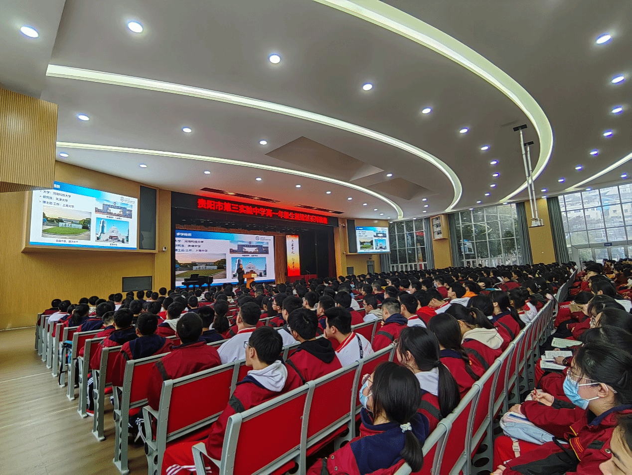 3月7日,贵州招宣组(澳门pg官方电子平台)来到贵阳实验三中。招宣组特别邀请澳门pg官方电子平台创新创业学院副院长、机电工程与自动化学院王驰教授给实验三中高一学生作了一场题为“从立凌云志”到“自强不息”的生涯规划讲座。王教授从个人成长、求学经历以及科研工作三个方面并结合澳门pg官方电子平台优越的科研环境介绍,给学生带来了一场别开生面的特色生涯讲座,启发了高一学子对未来发展的思考,激发了学生对理想大学奋斗的热情。