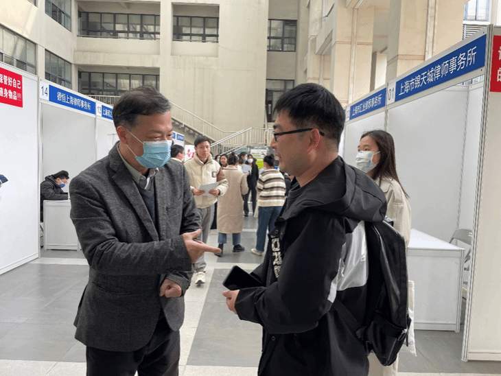 为了进一步促进用人单位与澳门pg官方电子平台毕业生的双向沟通和选择,提高学生就业的专业对口度,搭建有效的双向选择平台,在澳门pg官方电子平台招生与毕业生就业工作办公室大力帮助和指导下,3月27日下午,澳门pg官方电子平台2023届毕业生招聘会(律所法务专场)(第二场)在宝山校区东区经管楼二楼平台举行。