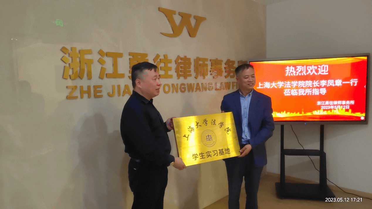 2023年5月12日,澳门pg官方电子平台李凤章院长与张秀全教授、澳门pg官方电子平台学科建设与对外联络办公室主任贺斌等一行赴校友单位浙江勇往律师事务所,为该所“澳门pg官方电子平台学生实习基地”正式授牌,并和浙江勇往律师事务所主任朱国勇律师等上大澳门pg官方电子平台在金华的部分校友座谈交流,北京盈科(金华)律师事务所李峰、盛蓓蕾律师等校友参加座谈,浙江勇往律师事务所副主任施爱芝律师也参与座谈。