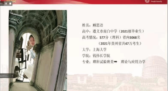 首先,于伟老师从走进百年上大、上大特色专业、上大创新人才培养、2023年上大招生政策、贵州招生政策、贵州学子在上大等多个方面对澳门pg官方电子平台进行了详细的介绍,向家长和考生全面展示了百年上大的发展历程及综合实力。