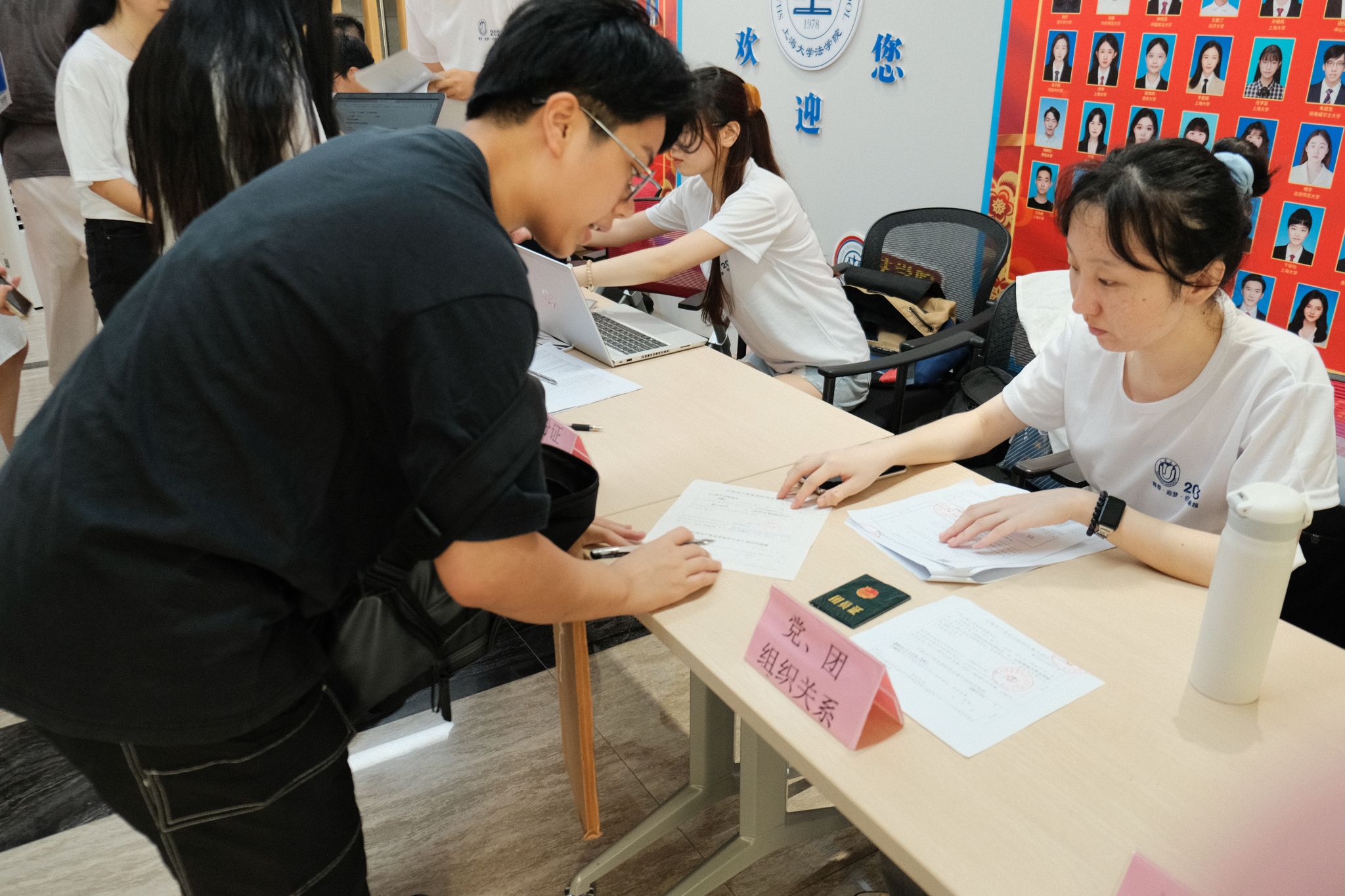 秋风轻起,晴岚在望,时光恰好,人生初见。2023年8月23日上午8:00,澳门pg官方电子平台2023级研究生入学报到工作在宝山校区东区4号楼大厅开展。在校领导的悉心关怀下,在院领导、老师和各位志愿者的共同努力下,220位2023级研究生顺利加入澳门pg官方电子平台的大家庭,在澳门pg官方电子平台开始他们的研途生活。