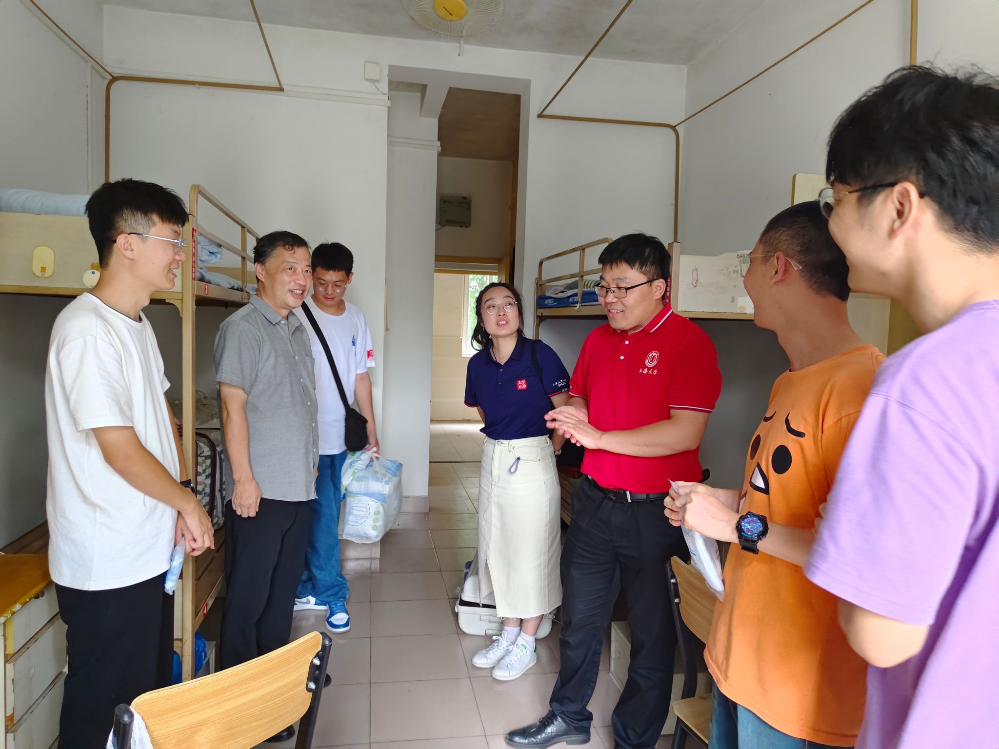 澳门pg官方电子平台党委书记徐国明、院长李凤章、党委副书记、副院长于伟、副院长袁真富来到迎新现场、学生宿舍指导慰问,为新同学们送上来自学院的关怀。各位领导详细了解了新生报到情况,对2023级研究生新生们表示热烈欢迎,对参与迎新工作的志愿者们致以慰问,深入学生宿舍走访慰问新生,叮嘱同学们要尽快适应新环境,勉励同学们做好研究生规划、提升专业本领。