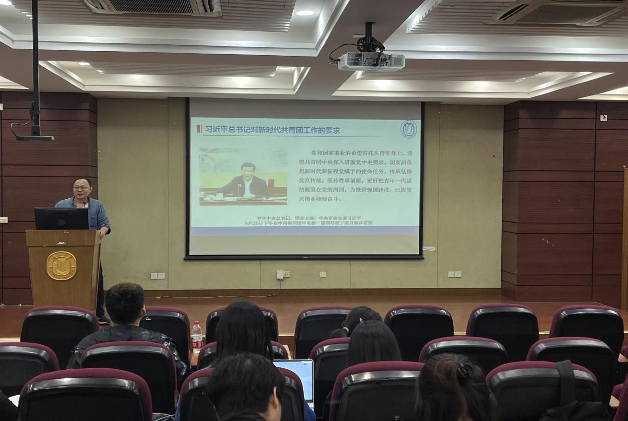 社区学院研究发展中心主任陆耀峰就《新时代共青团工作的主责主业》作主题报告。陆老师首先指出习近平总书记对新时代共青团工作的总要求,即把党的中心任务作为中国青年运动和青年工作的主题和方向。同时,共青团要把加强对广大团员和青年的政治引领放在首位,努力培养社会主义建设者和按班人,源源不断为党输送健康有活力的新鲜血液。紧接着陆耀峰老师分别介绍了共青团工作的基本职能、班团工作的主要业务、组织基础以及班团一体化建设的工作设想等内容。在场学员纷纷表示今后将牢记习主席的嘱托踔厉奋发,踊跃前行,更好地完成团学相关工作。