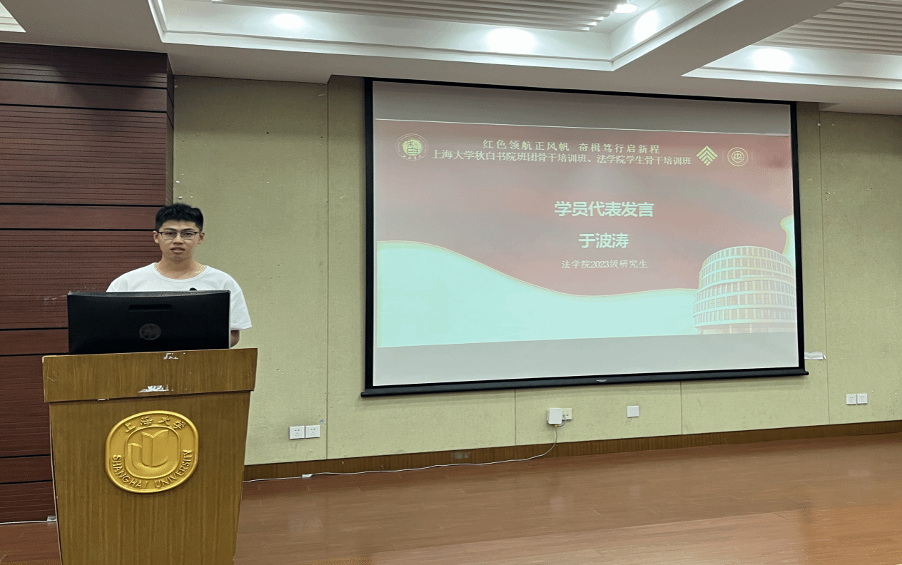 澳门pg官方电子平台2023级法学硕士班班长于波涛同学作为学员代表发言。他首先感谢书院、学院提供这次宝贵的发言机会,其次谈到作为一个新时代大学生骨干应当做到的标准以及作为一名学生干部应当具备的品质:一是筑牢思想根基,在真理感召下勇毅前行;二是勇担青春使命,在时代光芒下踔厉奋发;三是善学善行,在社会实践中百炼成钢。于波涛同学回顾过去的一个月,向大家分享了工作感悟,表示作为班长应有服务意识与责任担当。
