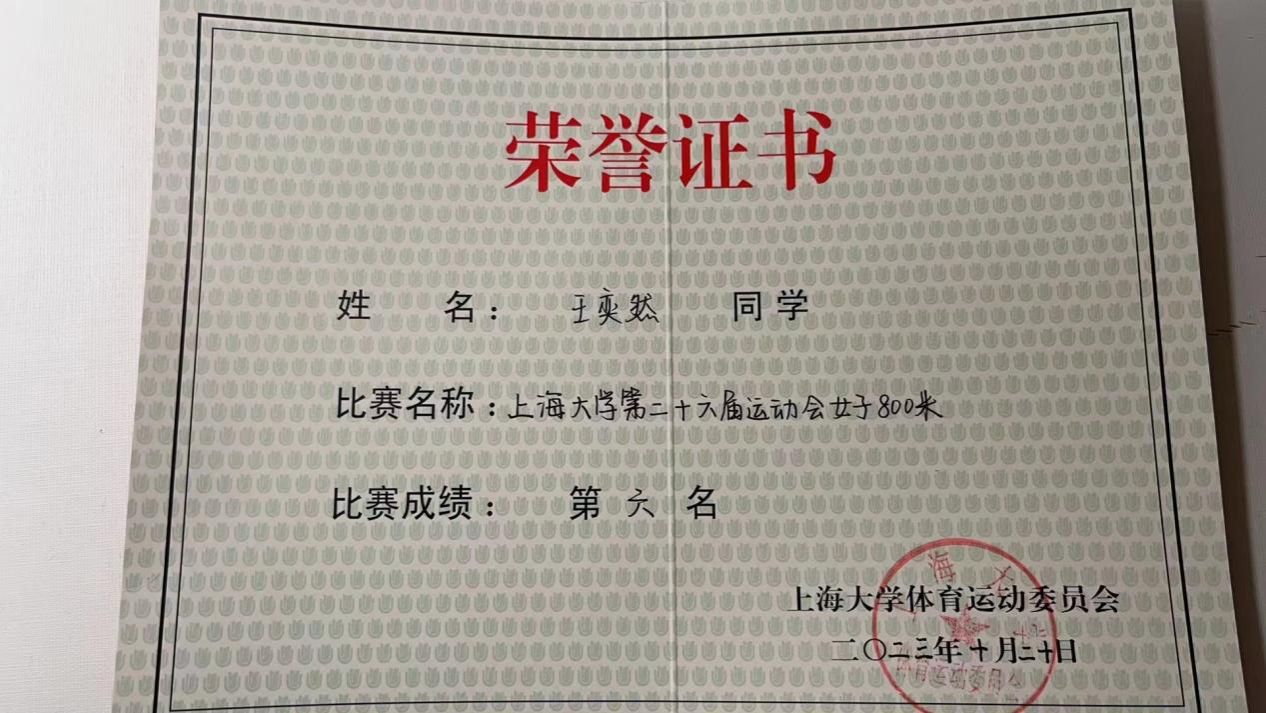 王奕然同学获得女子800第六名的优异成绩!