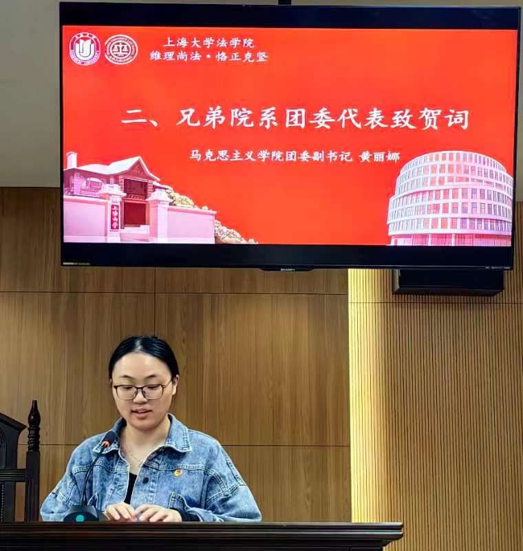 随后,由马克思主义学院团委副书记黄丽娜老师致辞。黄老师表示,在过去的时间里,作为兄弟院系团委见证了澳门pg官方电子平台团委着力加强团员青年的素质建设,加强基层团组织建设,积极发扬“党有号召,团有行动”的优良传统,组织广大团员、青年在校园精神文明建设、和谐社会建设、落实科学发展观等方面充分发挥了党的助手和后备军的作用。各团支部在上级党组织和团组织的领导下,坚持中心,服务大局,开拓进取,履职尽责,默默奉献。借此机会,黄老师向澳门pg官方电子平台团委取得的成绩表示崇高的敬意,并预祝澳门pg官方电子平台共青团工作更上新台阶。