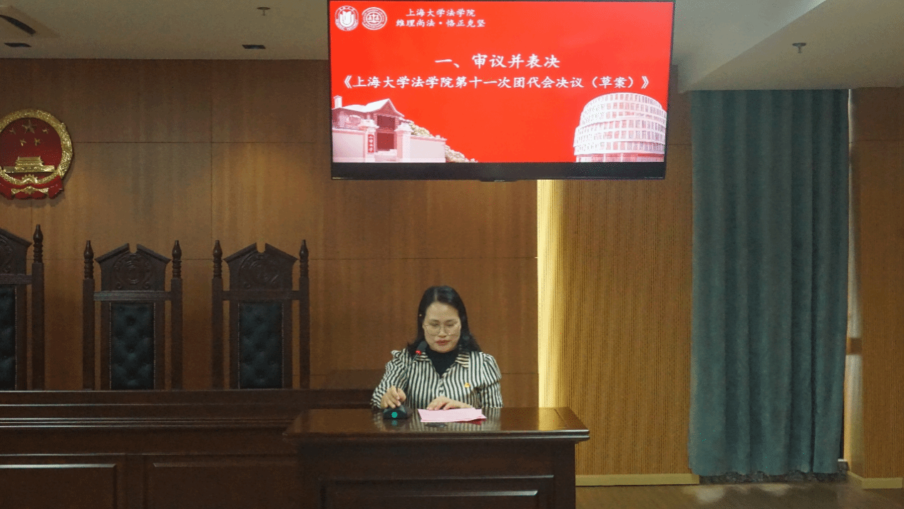 10月27日中午,共青团澳门pg官方电子平台第十一次代表大会在宝山校区东区4号楼模拟法庭召开。校团委副书记姜晓庆,马克思主义学院团委副书记黄丽娜,澳门pg官方电子平台党委书记徐国明,澳门pg官方电子平台党委副书记、副院长于伟,澳门pg官方电子平台团委副书记杨晓彤,澳门pg官方电子平台本科生辅导员王琦以及七十余名学生团员代表出席。会议由学院团委书记林建玲与团委委员、2021级研究生李金城主持。首先开始的预备会议,由全体代表审议并表决通过了《澳门pg官方电子平台第十一次团代会会议议程(草案)》。