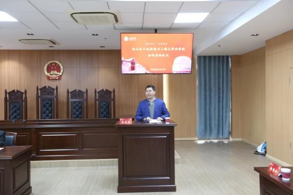 签约仪式结束后,“枫桥式人民法院”进校园——宝山区人民法院巡回审判活动在模拟法庭举行。澳门pg官方电子平台50余名学生代表在庭审现场旁听,亲身感受真实的审判过程。