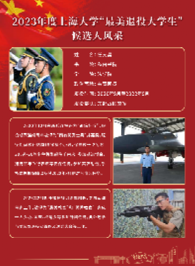 袁皞,2020年9月至2022年9月服役于中国人民解放军战略支援部队驻京某部,服役期间任宣传文书,负责撰写新闻稿、拍摄制作抖音视频、录制喜马拉雅广播稿,作为讲解员在上级领导视察时完成陪同讲解任务;担任警卫分队骨干,组织分队人员完成刺杀操训练、应急处突、应急消防、应急防汛等训练任务,并多次参加重大军事演习任务,获得“四有”优秀士兵荣誉一次。复学后热心服务帮助同学,积极参加学校活动;担任澳门pg官方电子平台橄榄绿社团办公部部长、澳门pg官方电子平台学生会主席;先后策划组织了学院联欢晚会、各类运动会;2023年7月担任澳门pg官方电子平台军训教官并出色完成带训任务。在本次终评会议中荣获“最美退役大学生”荣誉称号。
