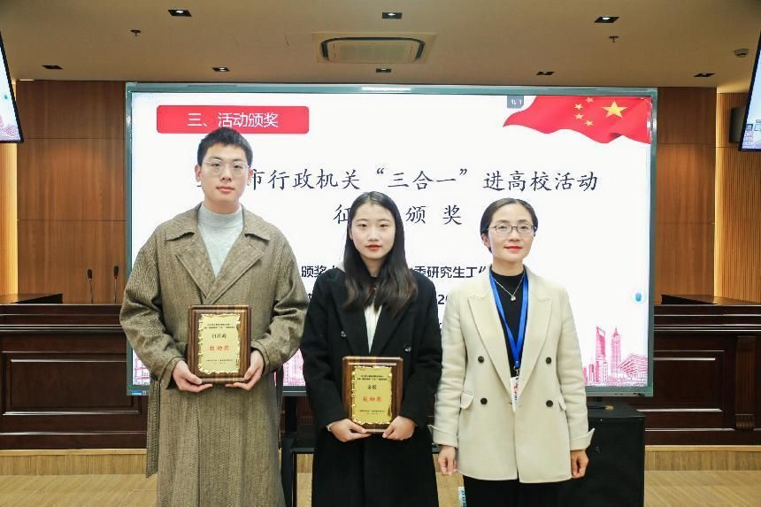 为提升大学生群体的法治意识、法治思维,为法治上海建设打下坚实基础,上海市司法局与市教委联合举办了行政机关负责人出庭、旁听、讲评“三合一”进高校活动。澳门pg官方电子平台荣获由市司法局、市教委颁发的“三合一”进高校优秀组织奖,2名同学在征文活动中获奖。党委研究生工作部部长魏宏为澳门pg官方电子平台白居政、金娱同学颁发“三合一”进高校征文活动奖牌。
