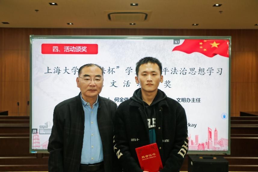 为深入学习贯彻习近平法治思想,推动青年法治教育走深走实,澳门pg官方电子平台面向全校开展了2023年“尚法杯”学生习近平法治思想学习征文活动,澳门pg官方电子平台学子在本次征文活动中施展才华,获得佳绩。校党委宣传部副部长、文明办主任何金伟、校团委副书记姜晓庆、澳门pg官方电子平台党委书记徐国明分别为获奖同学颁奖。