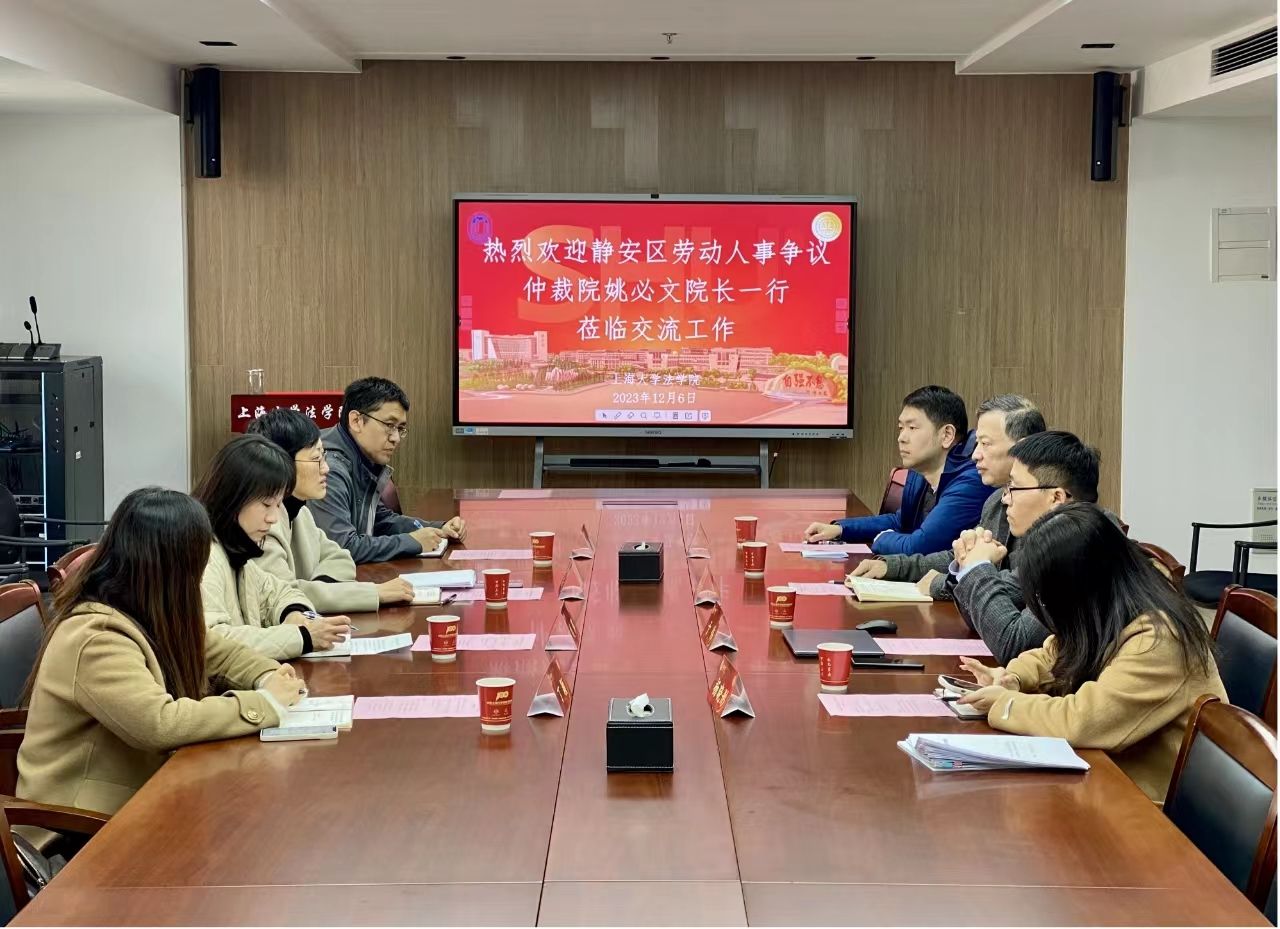 2023年12月6日下午14:30,静安区劳动人事争议仲裁院与澳门pg官方电子平台工作交流会在宝山校区澳门pg官方电子平台304会议室顺利举行。静安区劳动人事争议仲裁院院长姚必文,副院长刘萍,副院长李欣,办公室主任丁颖,澳门pg官方电子平台党委书记徐国明,澳门pg官方电子平台党委副书记、副院长于伟,机关党委副书记郑亮,澳门pg官方电子平台团委书记杨晓彤参加交流会。