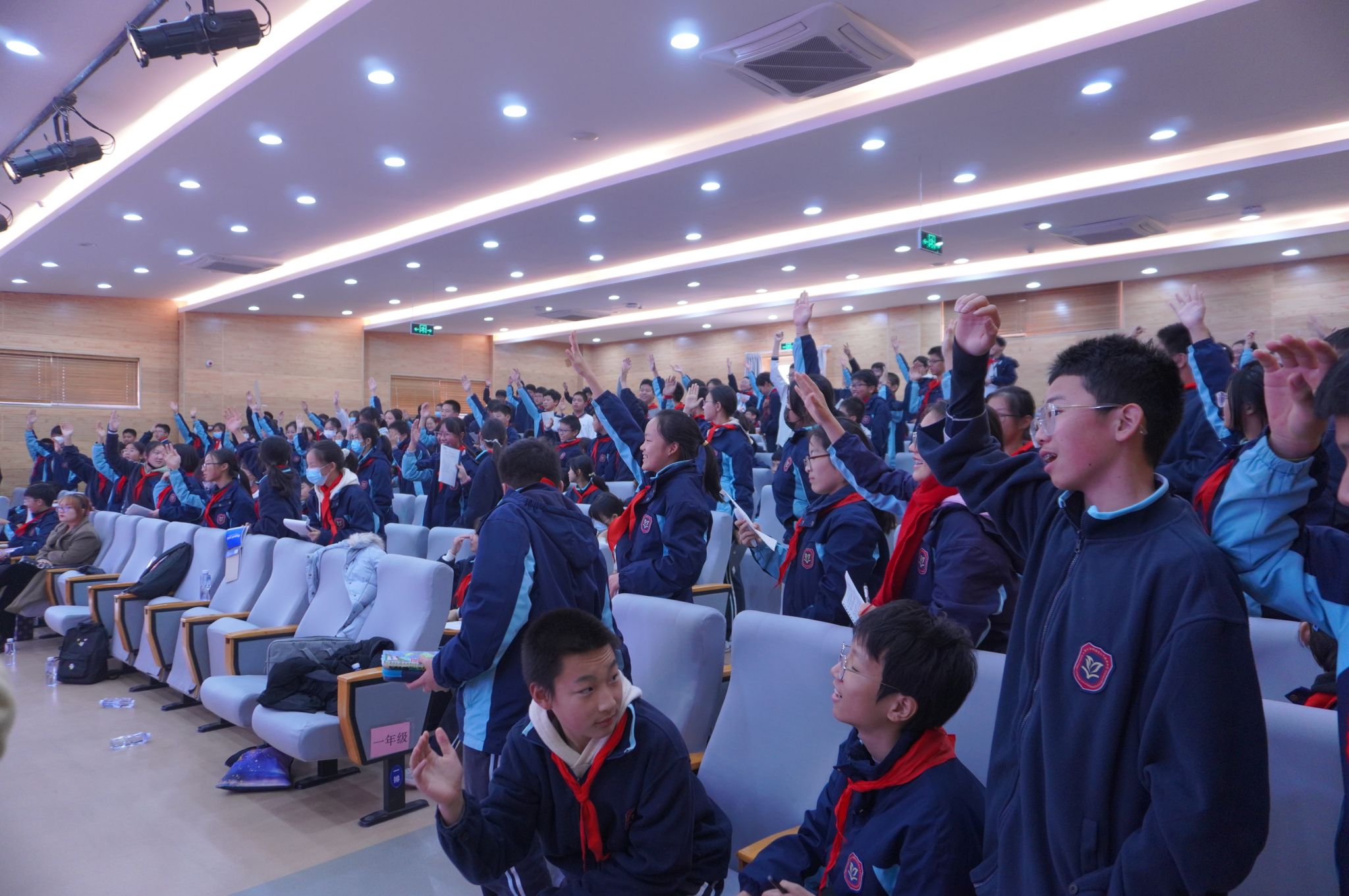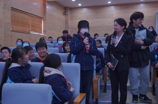 在问答环节中,同学们不但十分踊跃积极回答问题,而且每一道题目都能回答准确,尤其是在谈对宪法的认识和如何在日常生活中践行宪法的问题时,有的同学谈到践行宪法要从小事做起,在学习生活中首先要遵守学校手册,从小事上践行宪法精神;