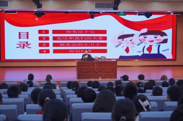 最后,应文娇同志通过剖析案例,以案说法,用通俗易懂的语言向同学们分析了生活中可能会遇到的违反宪法的行为,教育他们在懂得维护自己的合法权益的同时,也不能侵犯他人的合法权益,维护宪法的权威尊严和地位,做一名尊法、学法、守法、用法的好学生。