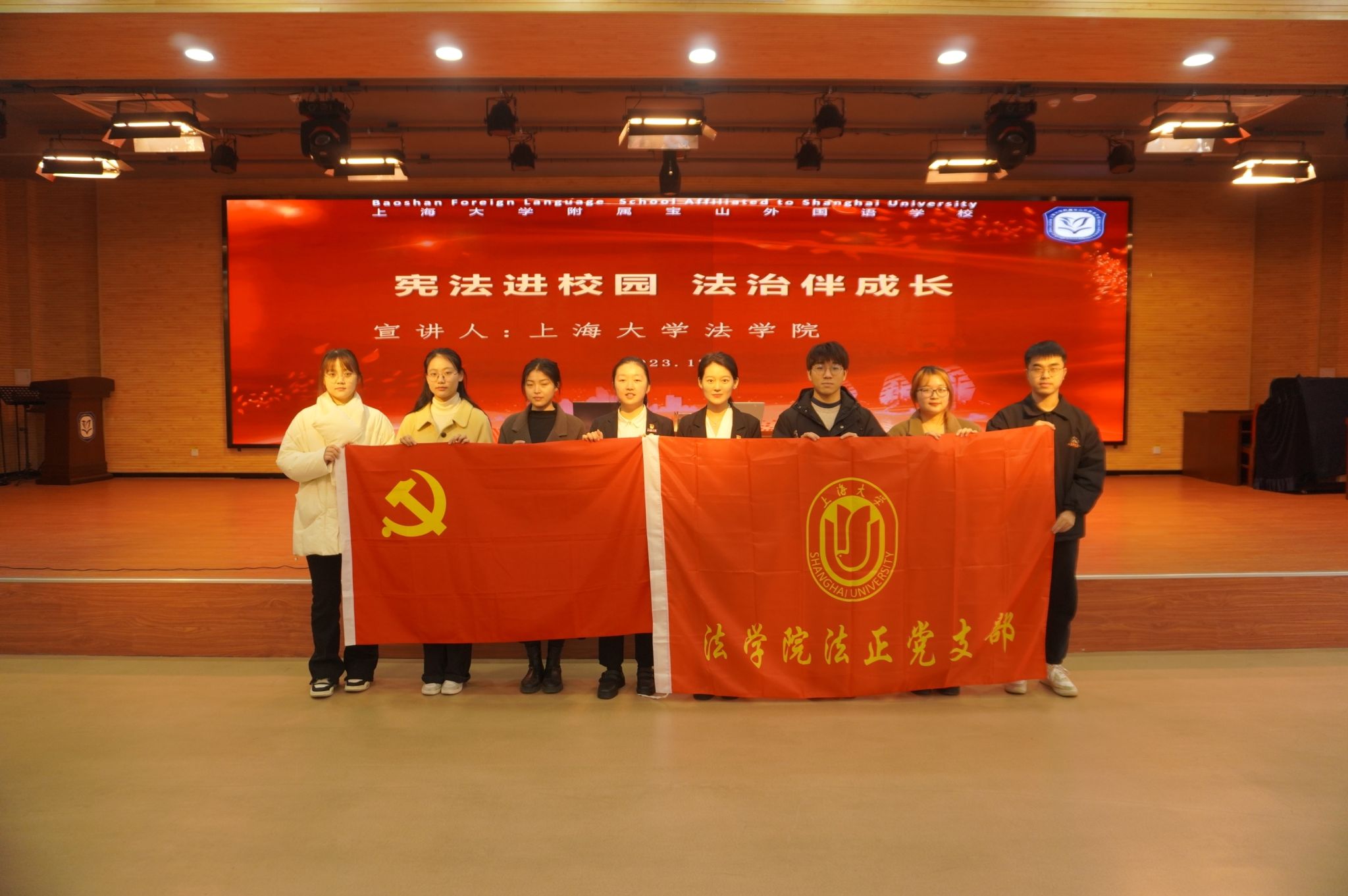 2023年12月4日是我国第十个国家宪法日,12月1日至7日是全国第六个宪法宣传周,由校党政办、党委宣传部、学生工作办公室、党委研究生工作部、校团委、澳门pg官方电子平台(秋白书院)联合举办的澳门pg官方电子平台第五届法治文化节也于12月4日正式开幕。在此背景下,为深入贯彻习近平法治思想,坚持社会主义法治道路,大力弘扬宪法精神,普及宪法知识,增强中小学生尊崇宪法、学习宪法、运用宪法的意识,12月6日下午,澳门pg官方电子平台法正党支部的党员同志前往澳门pg官方电子平台附属宝山外国语学校开展宪法进校园活动。
