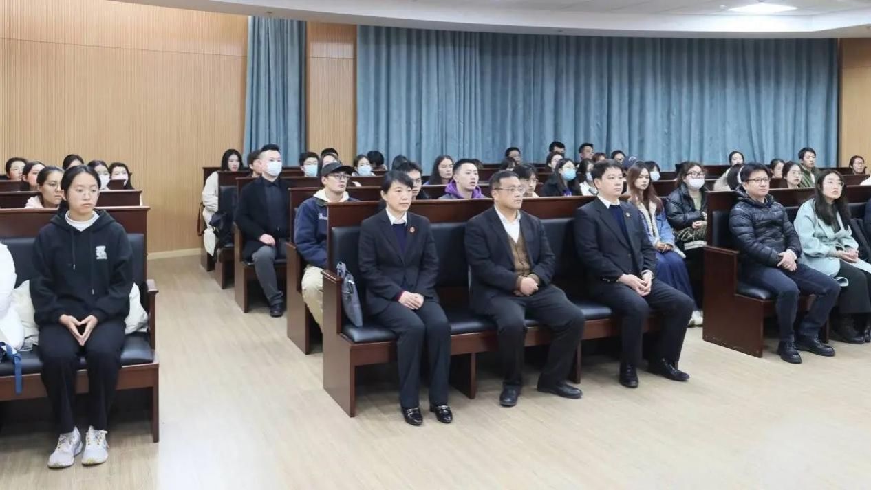 12月28日下午,静安法院校园公开庭审在澳门pg官方电子平台113模拟法庭内开展,恰逢澳门pg官方电子平台第五届法治文化节期间,同时这也是澳门pg官方电子平台“维理”系列司法科研活动第3期。静安法院党组成员、副院长傅朱钢,党组成员、政治部主任朱昱,澳门pg官方电子平台党委书记徐国明、澳门pg官方电子平台金融裁判与执破融合研究中心主任王梦飞、澳门pg官方电子平台团委书记杨晓彤参加活动。静安法院金融审判庭副庭长季玲玲为旁听的60余名上大师生们呈现了一个庄严的庭审现场。