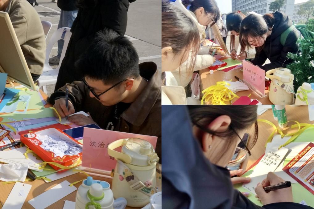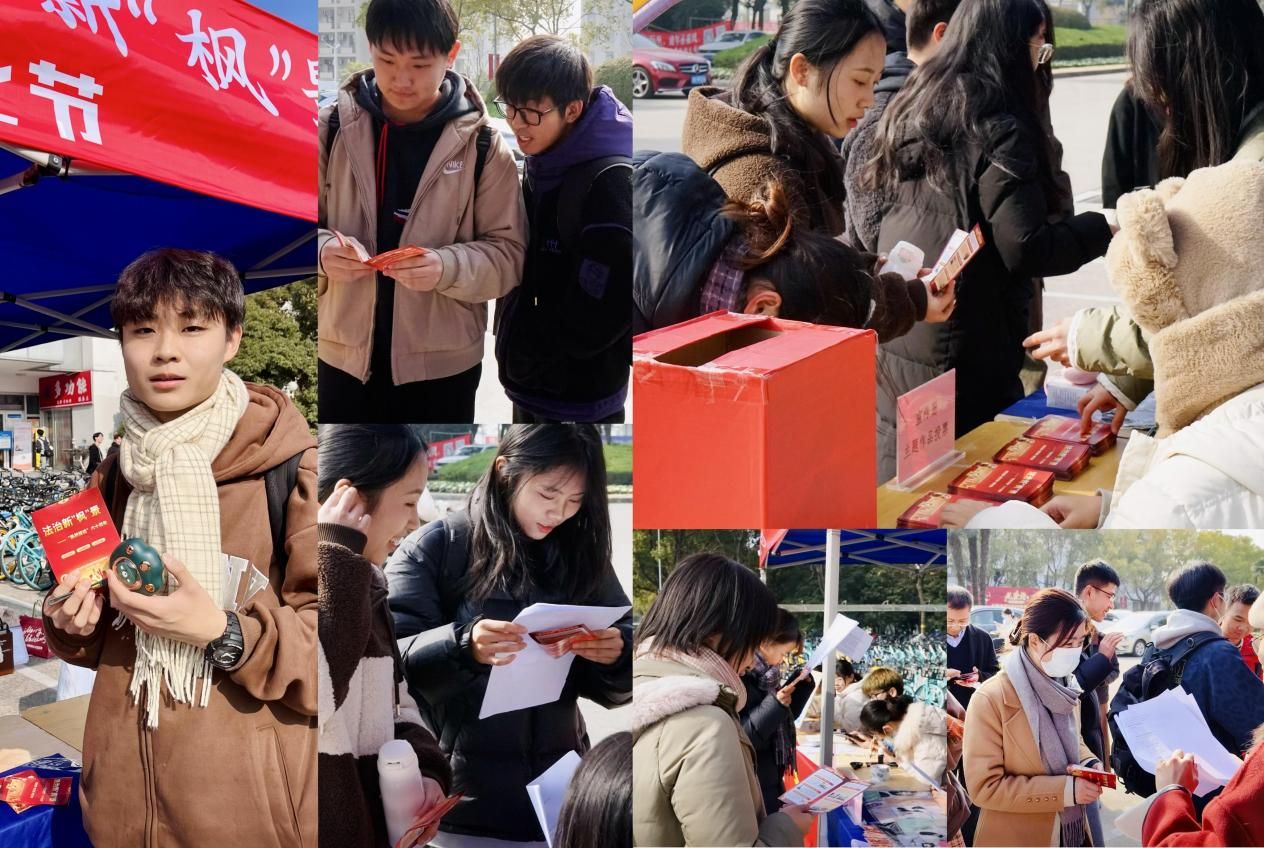 集市设有“枫桥经验”主题作品展览、“枫桥经验”案例解读暨法治宣传、“枫桥经验”法治知识竞答以及法治新“枫”景活动寄语四个宣传摊位,宣传活动不仅引起了澳门pg官方电子平台老师及同学们的关注,也吸引了很多校内工作人员的热情参与。