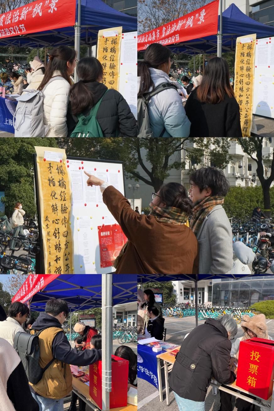 在此摊位,澳门pg官方电子平台研究生党建中心将前期面向澳门pg官方电子平台学生征集的“新时代枫桥经验”主题原创作品进行了线下展览,吸引了上大师生、员工驻足观看。参观者对自己所认为的最能够体现“新时代枫桥经验”的作品进行了投票,这一环节不仅展示了澳门pg官方电子平台学生们的才华和创意,也加深了大家对于枫桥经验的理解和认同。