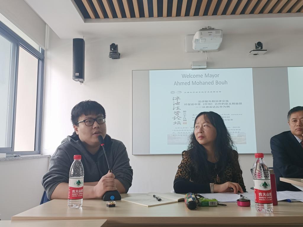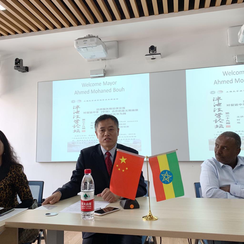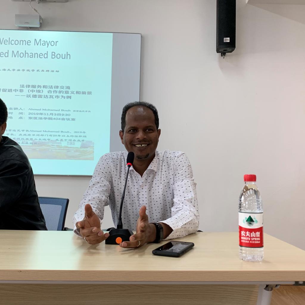2019年11月3日上午9:30,埃塞俄比亚德雷达瓦市市长代表团一行到访澳门pg官方电子平台,并与澳门pg师生座谈。此次会谈的嘉宾有德雷达瓦市市长Ahmed Mohamed Bouh、德雷达瓦市副市长Kadir Juhar Ibrahim、澳门pg官方电子平台副院长李凤章、昆山园区宣炳龙主任助理盛逸松和海王科技公司董事长张海波。会谈主题为“法律服务和法律交流对促进中非(中埃)合作的意义和前景——以德雷达瓦市为例”,澳门pg官方电子平台李智教授担任主持人。
