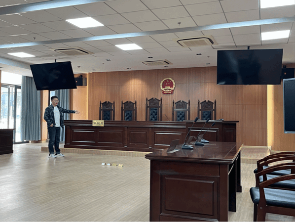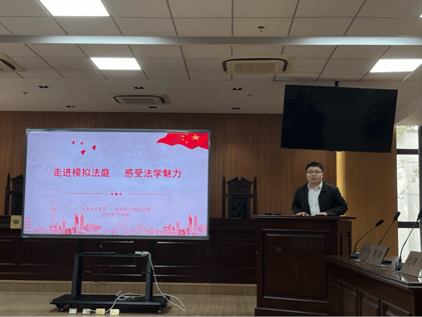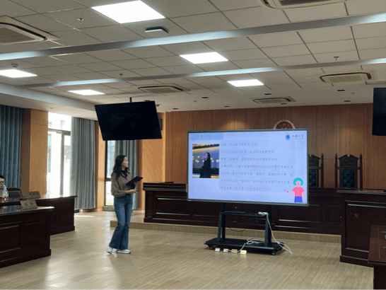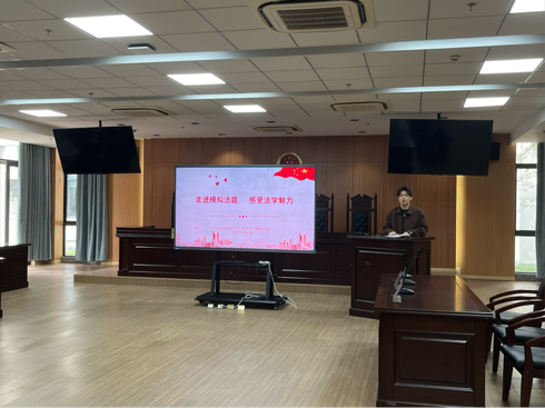 朋辈交流环节结束后,魏振同学向大家介绍了本次开放日的主要举办地模拟法庭。