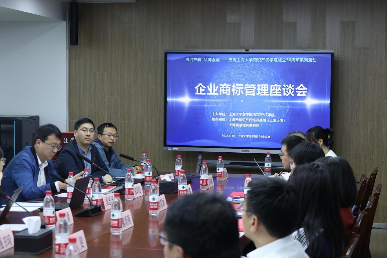 2024年5月10日下午,庆祝澳门pg官方电子平台知识产权学院成立30周年系列活动之“企业商标管理座谈会”在宝山校区澳门pg官方电子平台304会议室顺利举行。本次座谈会由澳门pg官方电子平台/知识产权学院主办,上海市知识产权培训基地(澳门pg官方电子平台)、上海瓴慧律师事务所协办,来自博世、采埃孚、联合利华、美泰等知名公司的商标负责人、法务总监,以及法官、高校学者等嘉宾,和澳门pg官方电子平台知识产权研究生参加了本次座谈会。