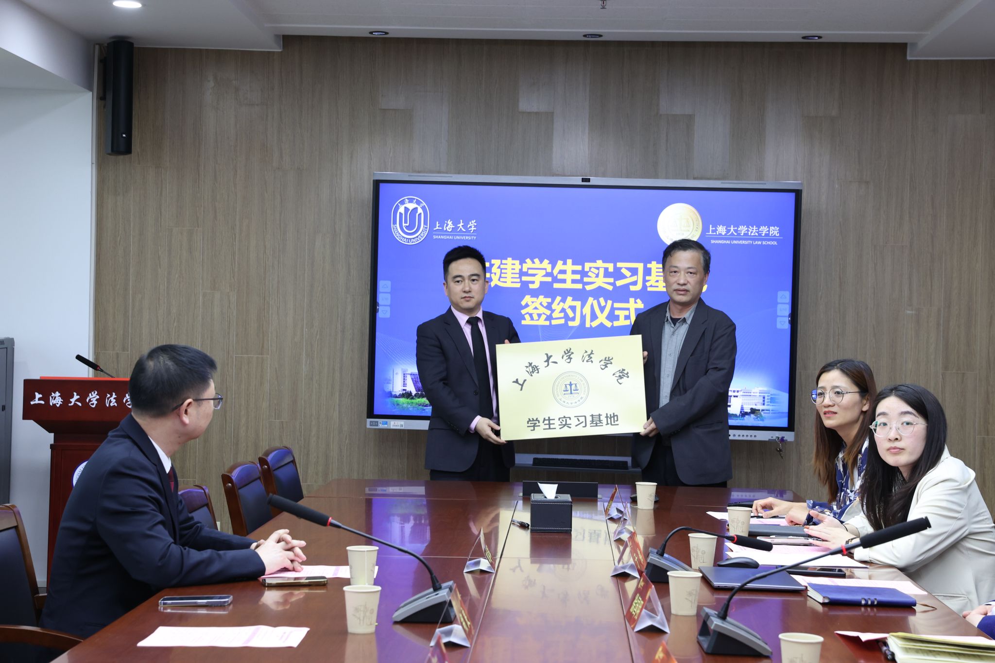在澳门pg官方电子平台学生实习基地授牌仪式中,徐国明代表澳门pg官方电子平台向北京市隆安律师事务所上海分所授予“澳门pg官方电子平台学生实习基地”铜牌。