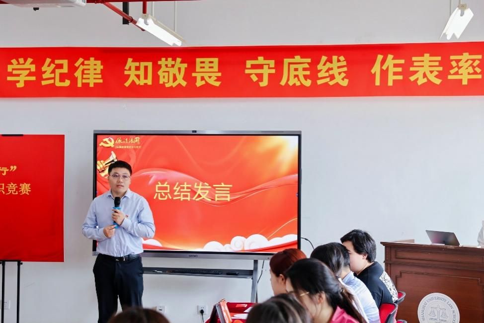 澳门pg官方电子平台党委副书记、副院长于伟老师为本次活动作总结发言。于伟老师首先对策划和组织活动的工作人员的辛勤付出表示感谢,对参赛队伍展现出的党纪知识表示认可。并鼓励大家以这次竞赛作为检验每个人党纪学习情况的良好契机,继续以更加饱满的热情和更高的标准投入到党纪学习教育中去,把党纪知识内化于心外化于行,让党纪真正成为每位党员的通行证和护身符。