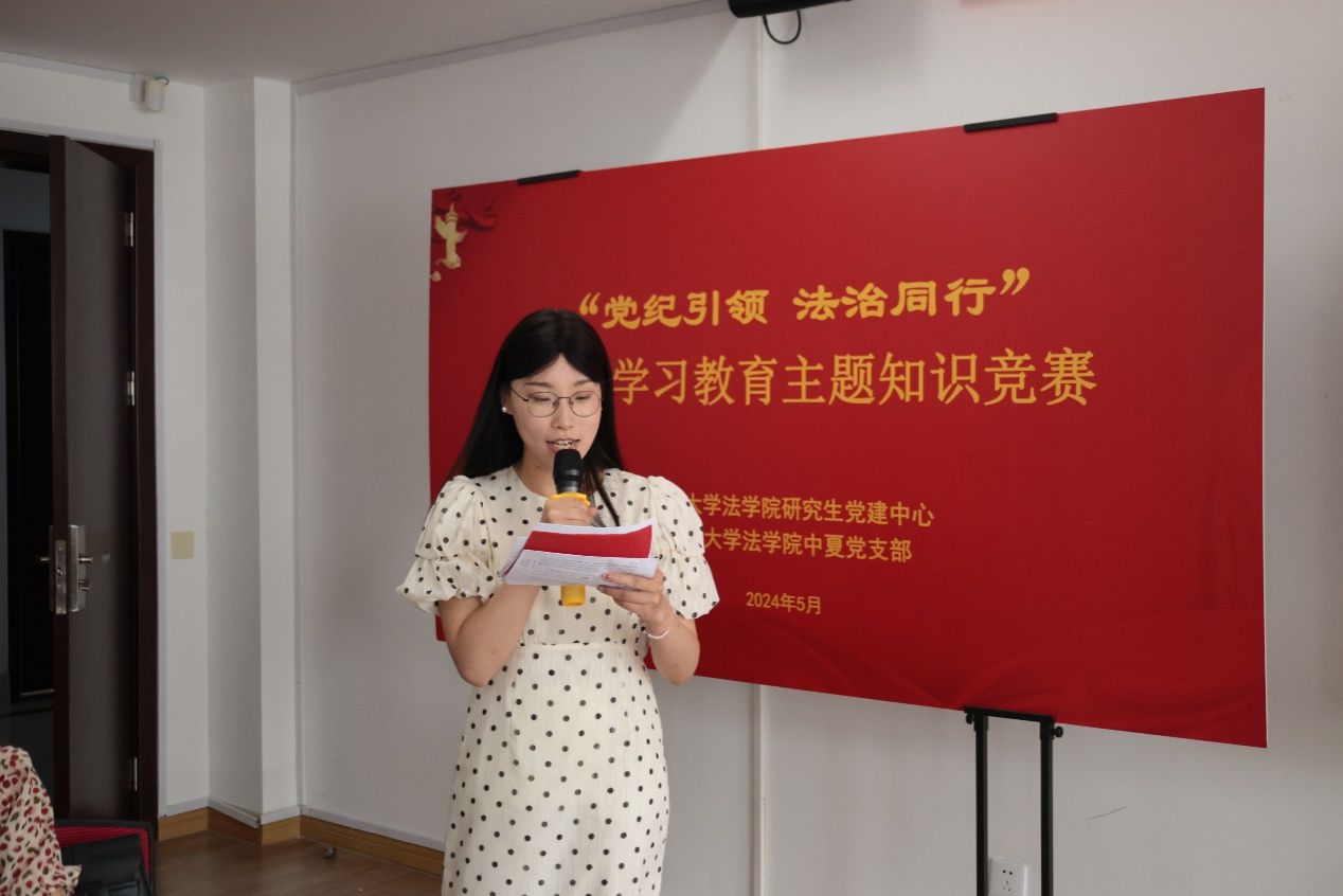 为了认真推进党纪学习教育的开展,加强澳门pg官方电子平台全体学生党员对《中国共产党纪律处分条例》的学习领会,强化党支部的纪律建设,2024年5月30日下午,澳门pg官方电子平台研究生党建中心联合本科中夏党支部开展“党纪引领﹒法治同行”党纪学习教育主题知识竞赛。来自澳门pg官方电子平台各本研党支部的10支队伍参加竞赛。澳门pg官方电子平台组织人事部组织处副处长、党校副校长卢吉超老师,党委研究生工作部副部长周轶老师,学工办思政科副科长孙钟玲老师,澳门pg官方电子平台党委副书记、副院长于伟老师及全体本研思政辅导员观摩了竞赛。