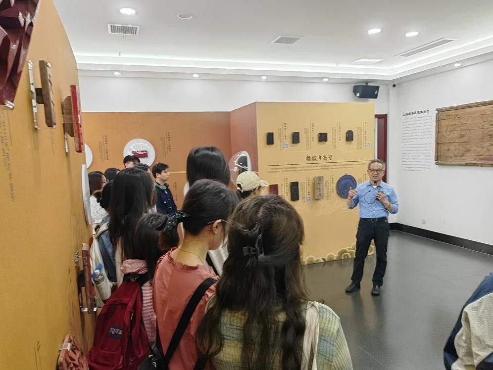 在上海翰林匾额博物馆中还陈列了一些来自段和段律师事务所收藏的雕版。这些雕版和匾额的存在证明了历史上我国人民早早便有了版权保护意识。上海段和段律师事务所高级合伙人郭国中律师为学生们详细介绍了雕版及其背后与知识产权的关联内容。