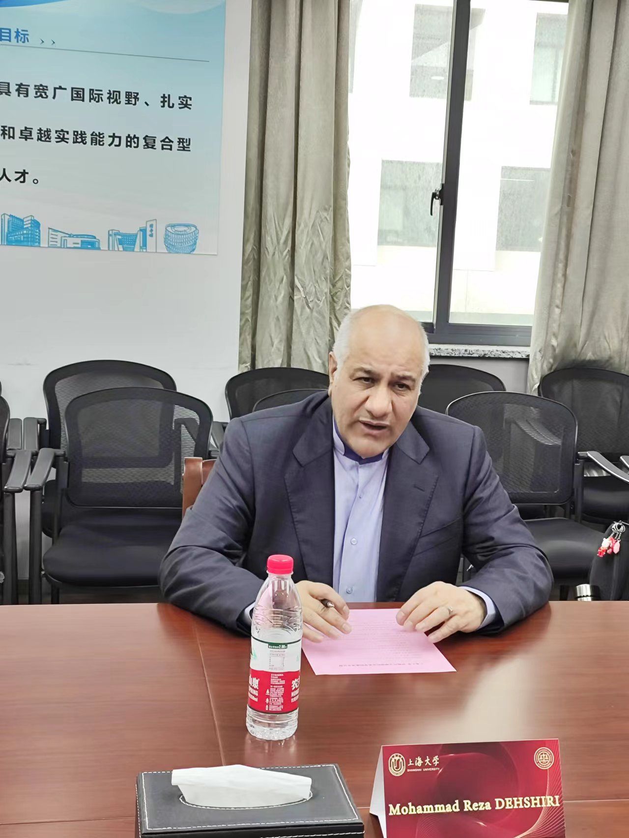 Mohammad Reza DEHSHIRI对澳门pg官方电子平台的热情接待表示感谢,并简要介绍国际关系学院的基本情况,国际关系学院是伊朗外交官的摇篮。他表示澳门pg官方电子平台与国际关系学院合作前景十分广阔,可以在国际组织、国际法、模拟法庭等多方面合作,热忱欢迎澳门pg官方电子平台师生去国际关系学院进行交流学习。