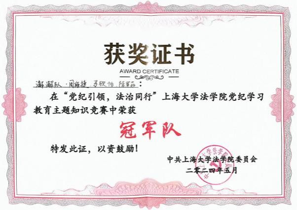 中夏党支部代表队在学校党委组织的“学纪律、知敬畏、守底线、作表率”党纪知识竞赛中荣获“二等奖”,在澳门pg官方电子平台组织的“党纪引领・法治同行”党纪知识竞赛中荣获“冠军队”称号。