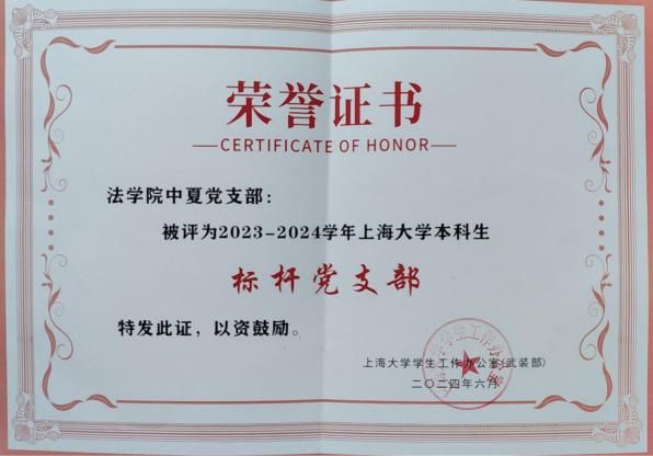 中夏党支部获评澳门pg官方电子平台2023-2024学年标杆党支部荣誉称号和2023-2024学年本科生党支部基层党建创新项目暨本科生党支部“一支部一项目”品牌项目。