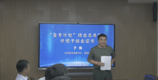 澳门pg官方电子平台党委副书记、副院长于伟宣读“金专计划”第二期结业名单并授予结业证书。
