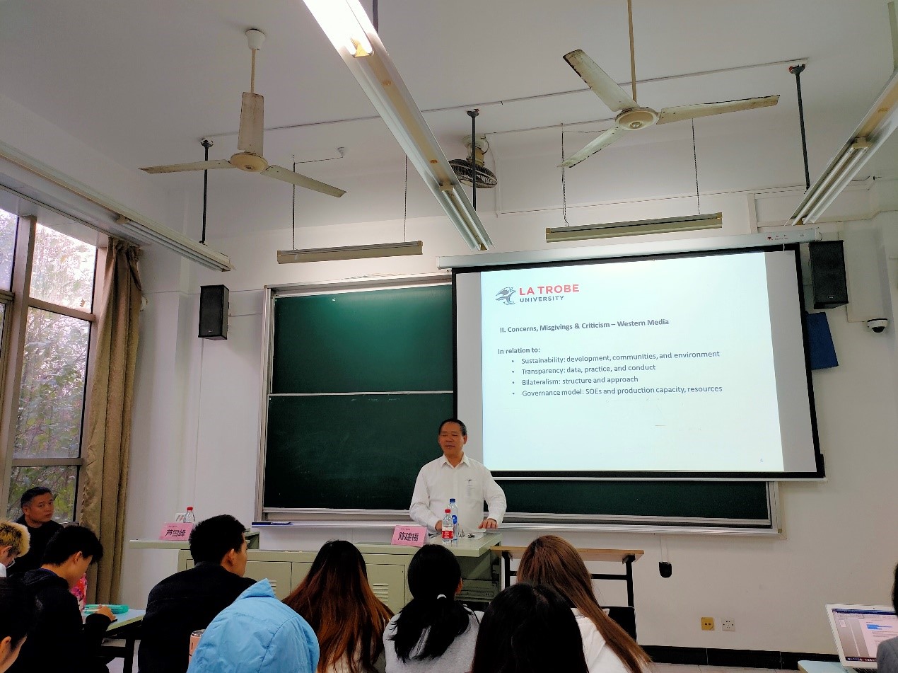 11月29日中午12点,澳门pg官方电子平台“泮池法学论坛”第46期在澳门pg官方电子平台本部A112举行。本次论坛由澳大利亚La Trobe University陈建福教授主讲,题目是“BRI 2.0 and Policy Shift in the Implementation of Belt & Road Initiative”。澳门pg官方电子平台院长李凤章教授担任主持人,王之琼老师为与谈人。