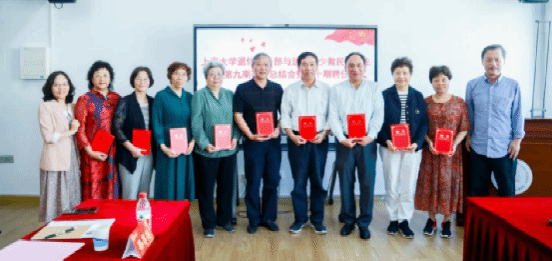 离退休工作处副处长王宇华和澳门pg官方电子平台党委书记徐国明为结对导师颁发结对导师聘书并合影留念。