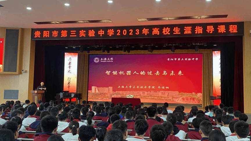 同时注重加大对学校特色学院和优势学科的宣传,特别邀请澳门pg官方电子平台未来技术学院教授、澳门pg官方电子平台无人艇工程研究院副院长齐俊桐老师前往贵阳市实验三中,为一千余名高一学生作了题为《智能机器人的过去和未来》的精彩讲座。