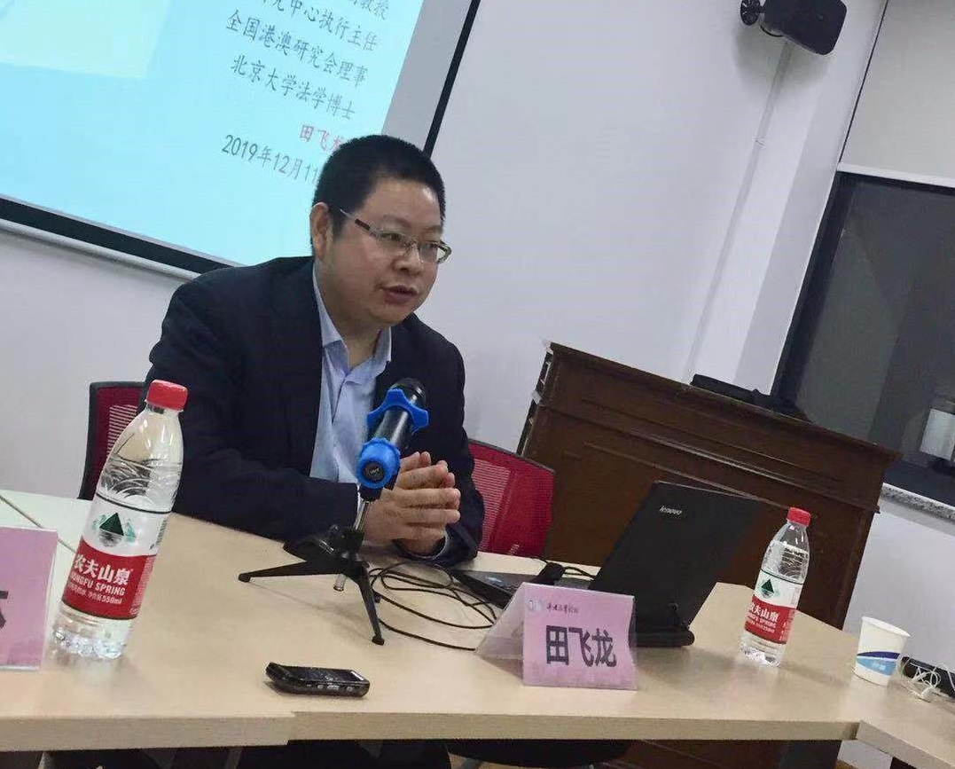 2019年12月11号晚7点,澳门pg官方电子平台泮池法学论坛第50期在澳门pg官方电子平台504会议室举行。本次的主讲人为北京航天航空大学田飞龙副教授,讲座主题为“香港2019变局与‘一国两制’演变”。讲座的主持人为澳门pg官方电子平台赵清林副教授,与谈人为徐静琳和金枫梁老师。