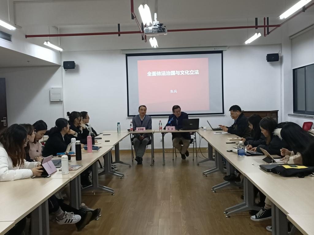 2019年12月19日下午18点30分,澳门pg官方电子平台泮池法学论坛第53期在澳门pg官方电子平台504会议室举行。本次讲座的主讲人是全国人大法律工作委员会文化室原主任朱兵,讲座主题为“全面依法治国与文化立法”。此次讲座由澳门pg官方电子平台院长文学国教授主持。
