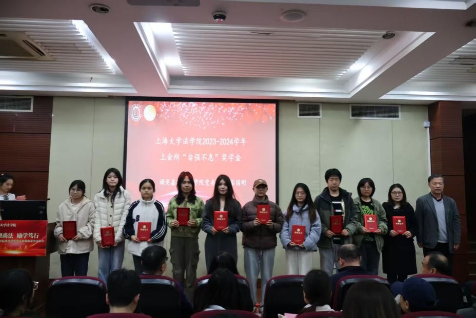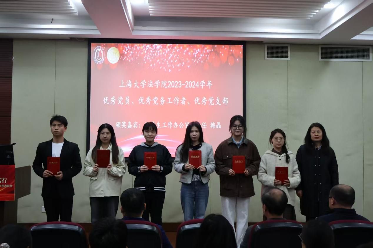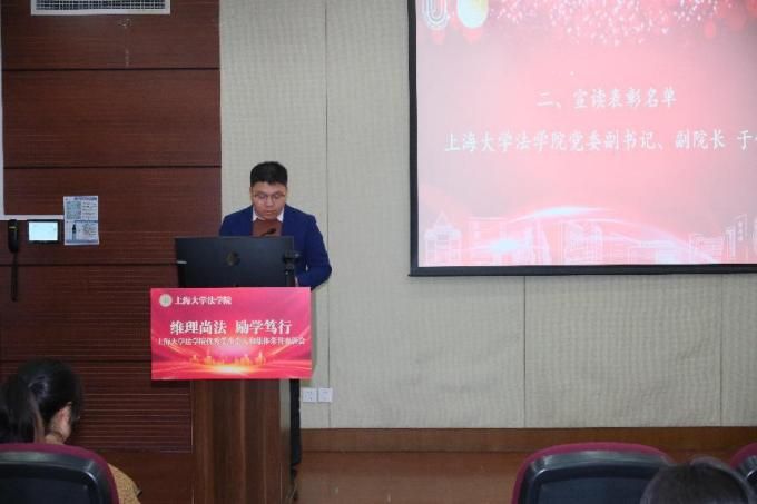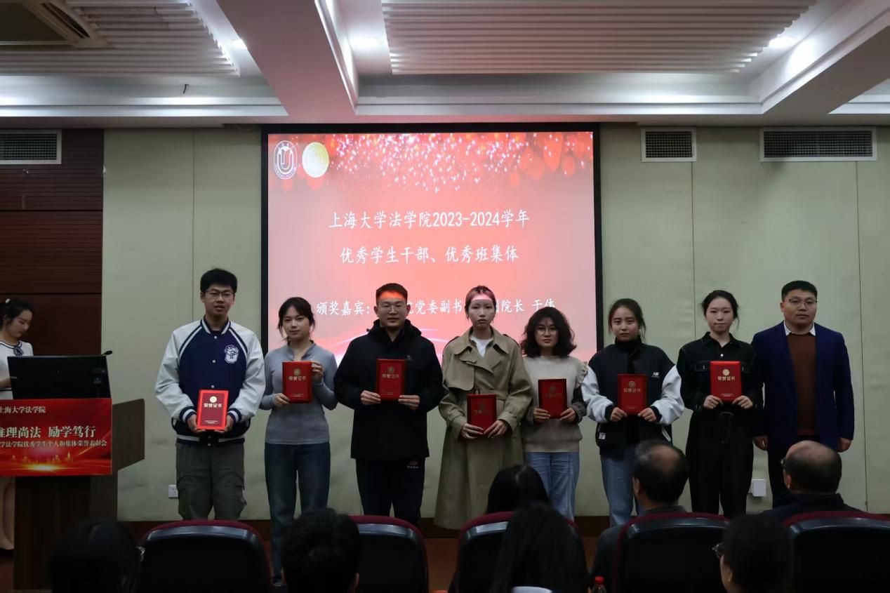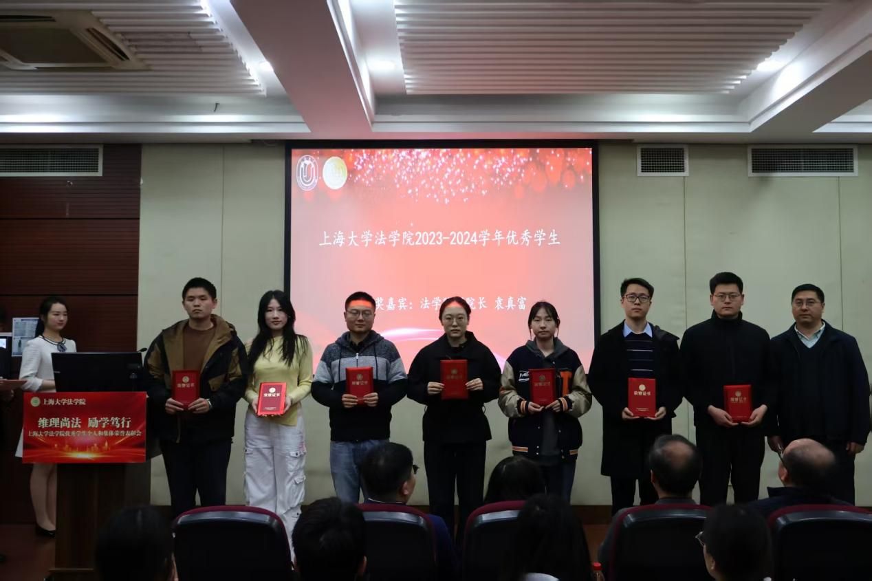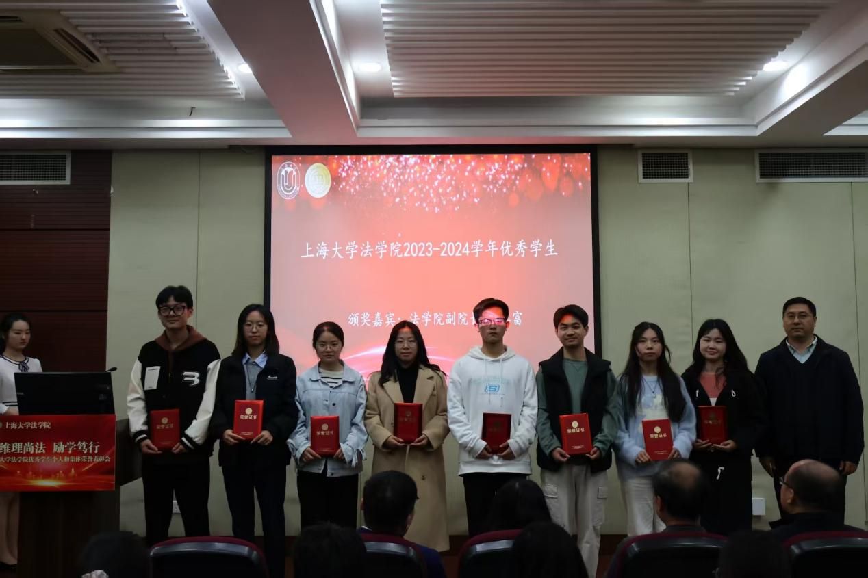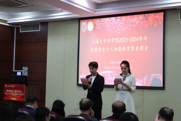 2025年3月28日下午,澳门pg官方电子平台在宝山校区经管大楼115室举行2023-2024学年优秀学生个人和集体荣誉表彰大会。澳门pg官方电子平台学生工作办公室副主任韩晶、澳门pg官方电子平台党委研究生工作部副部长周轶,澳门pg官方电子平台党委书记徐国明,澳门pg官方电子平台二级教授文学国,澳门pg官方电子平台党委副书记、副院长于伟,澳门pg官方电子平台副院长、知识产权学院院长袁真富以及学院各年级的辅导员老师、获奖学生以及各年级学生代表参加表彰大会。本次表彰大会由澳门pg官方电子平台研究生王睿思和本科生严嘉轩同学主持。
