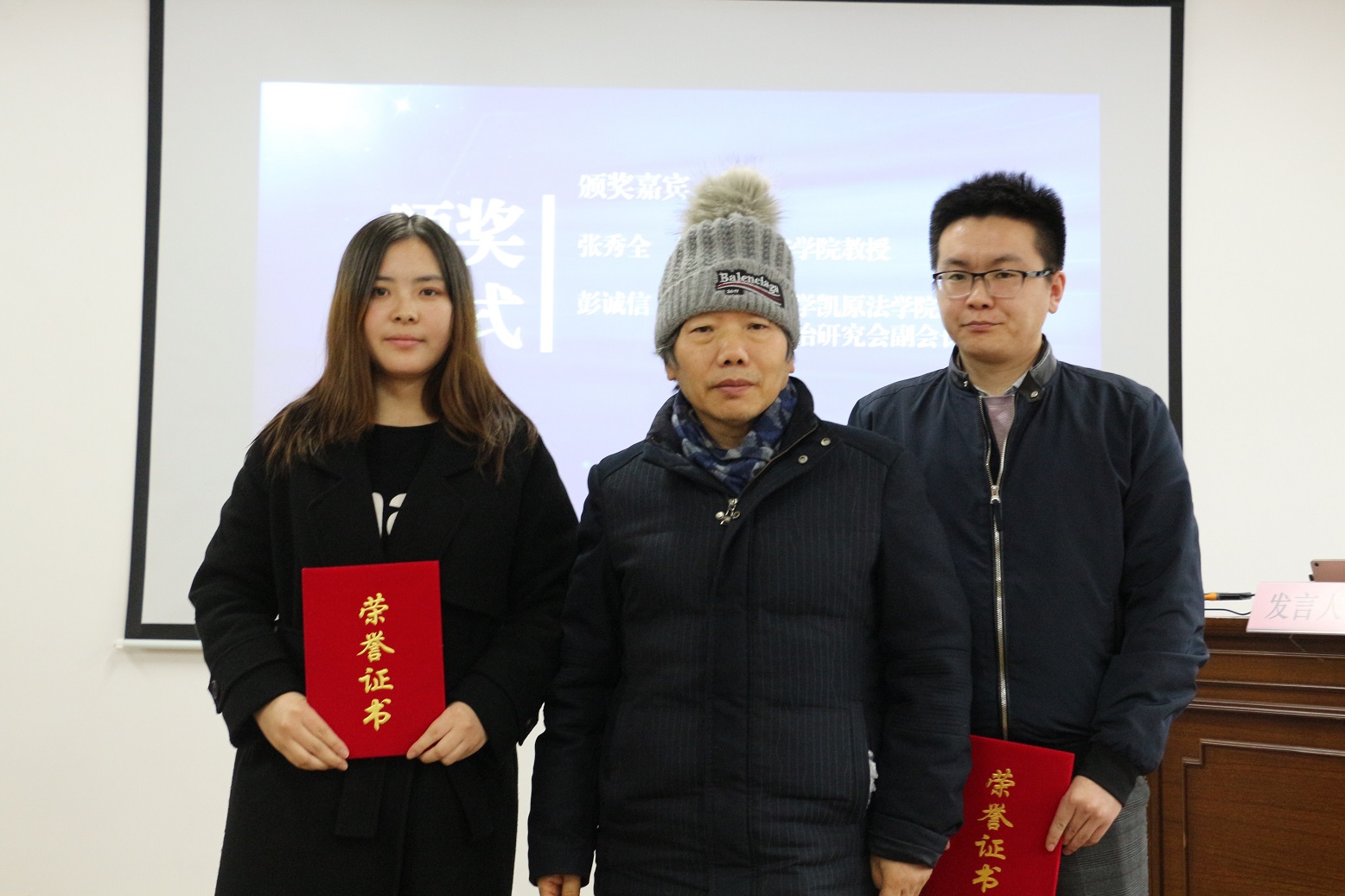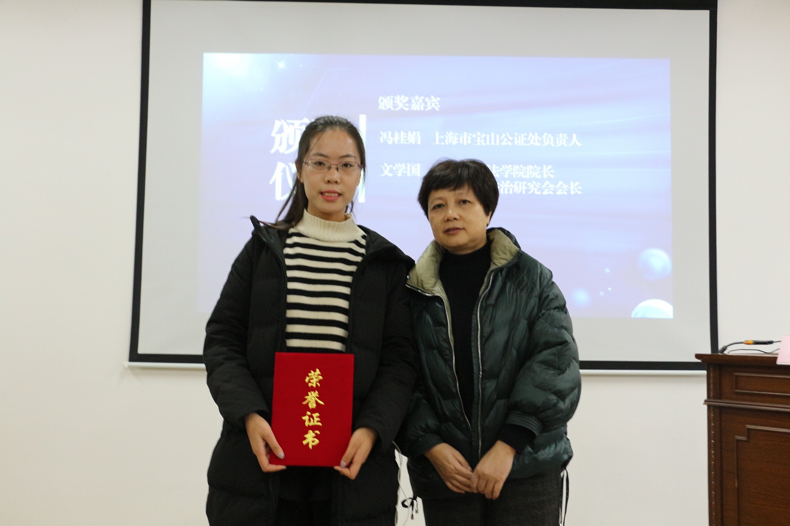 随后,第二环节产权、登记和公证有奖征文颁奖仪式正式进行,澳门pg官方电子平台党政办公室法务办副主任陈敬根教授宣读了获奖决定,据悉本次征文共收到28篇投稿,在专家匿名评审的基础上,评出一等奖两名,二等奖四名,获奖作品在《上海法学研究》第19卷以及《产权法治研究》“产权、登记和公证”专题栏目中进行刊发。上海市宝山公证处负责人冯桂娟、上海交通大学凯原澳门pg官方电子平台副院长彭诚信教授、澳门pg官方电子平台张秀全教授为获奖者颁奖并合影留念。