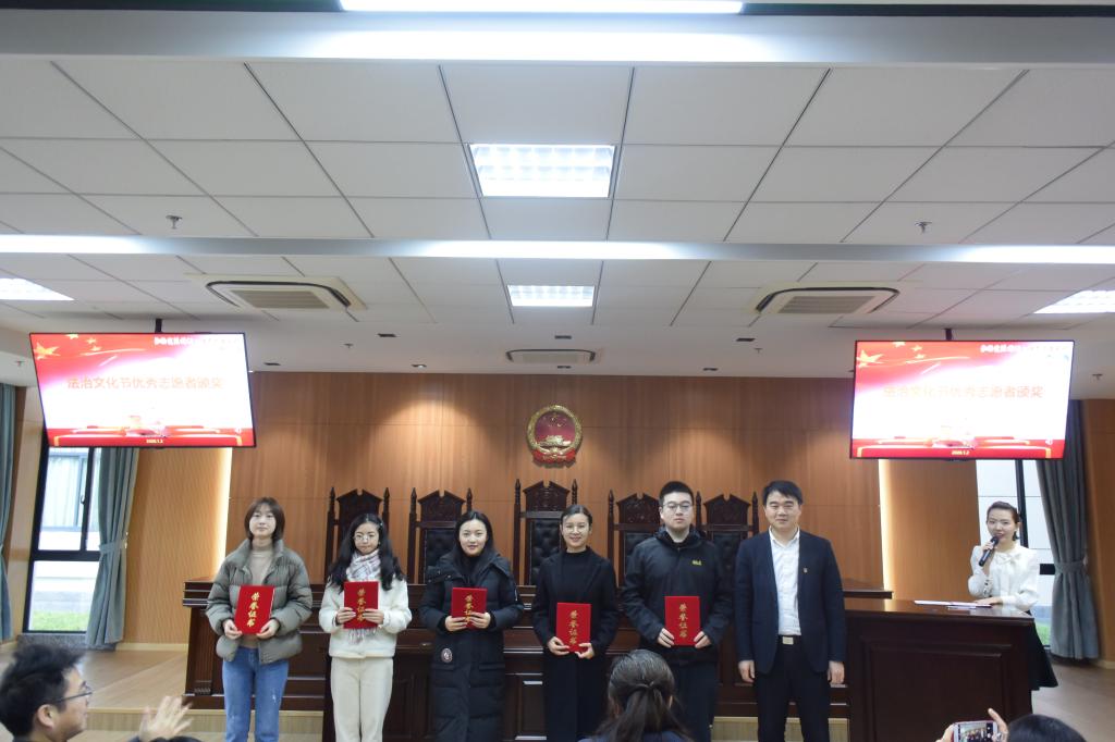 接下来澳门pg官方电子平台党委副书记王国正老师对法治文化节优秀志愿者进行颁奖,他们分别是田小雨、崔旭光、陈瑶瑶、高越、宋天霖。